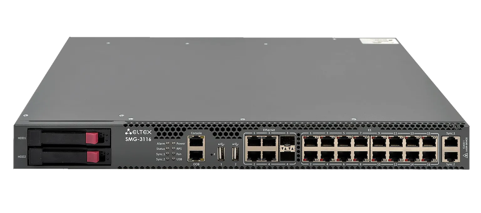 — До 16 потоков Е1 (RJ-48) — До 496 VoIP-каналов — Питание AC/DC — Поддержка SIGTRAN (M2UA, IUA)